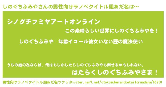 | 胡散臭い通販商品みたいなあだ名 | 『億万長者になれる水晶球…その名も「しのぐちふみや」』 |