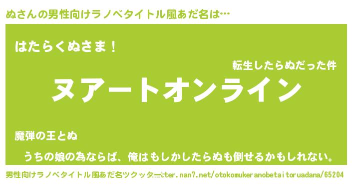 | 胡散臭い通販商品みたいなあだ名 | 『億万長者になれるブレスレット…その名も「ぬ」』 |