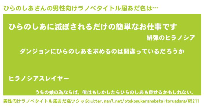 ひらのしあさんの男性向けラノベタイトル風あだ名をツクッター!