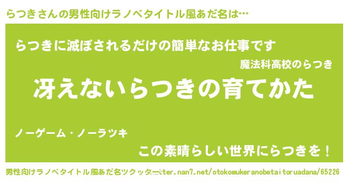| 意味不明あだ名 | 『住所不定無職らつき(79歳)』『自称らつき』 |