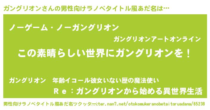 | 意味不明あだ名 | 『住所不定無職ガングリオン(74歳)』 |