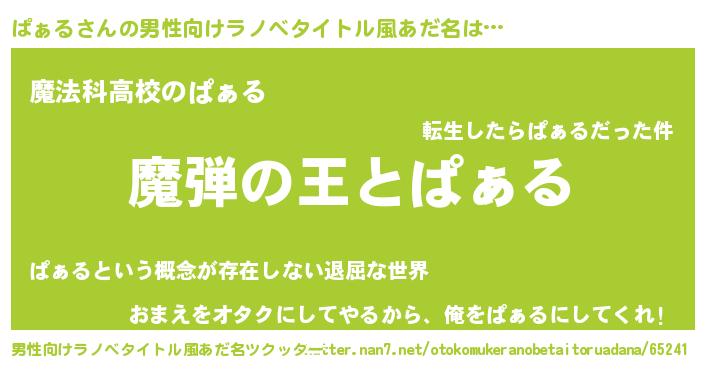 | ヒーロー風カッコイイあだ名 | 『仮面パァダー』『ウルトラ戦士パァル』 |