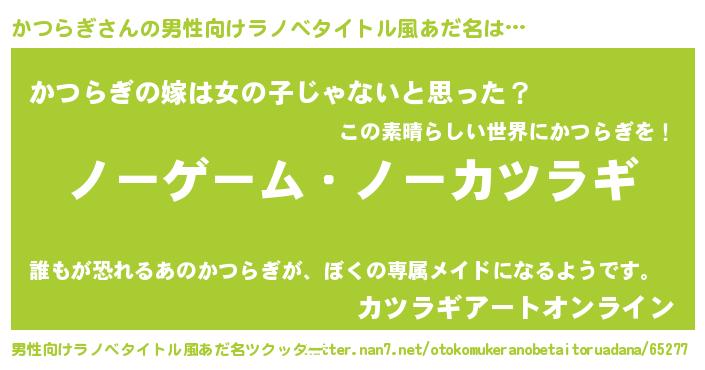 | 女子向けラノベタイトル風あだ名 | 『死神かつらぎの再婚』 |