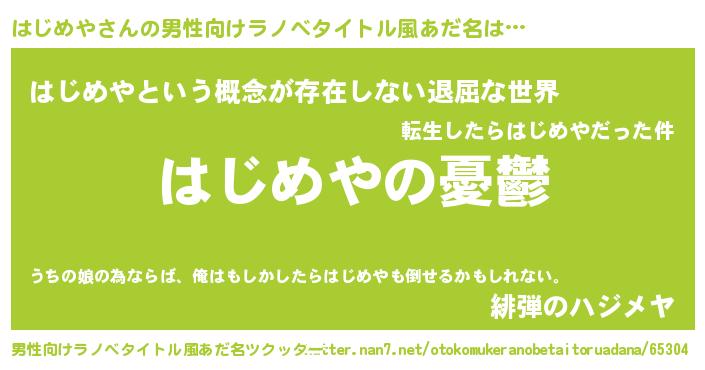 はじめやさんの男性向けラノベタイトル風あだ名をツクッター!