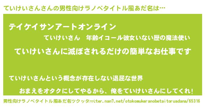 | ヘコむあだ名 | 『ていっふぃ~』『ていけいさん(笑)』 |