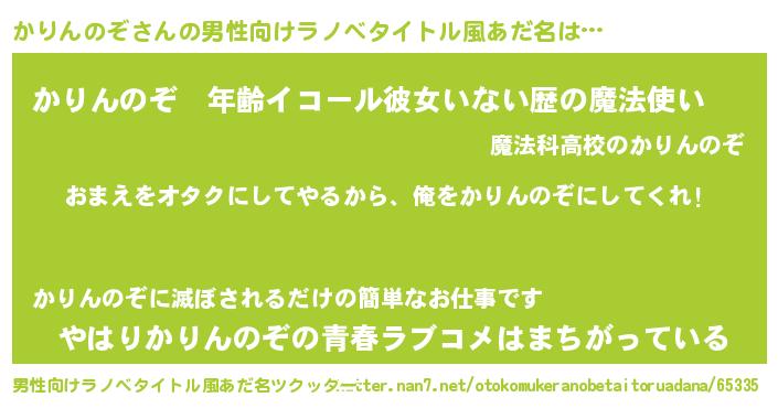| 女子向けラノベタイトル風あだ名 | 『かりんのぞ夫妻のなれそめ』 |