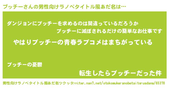 | 女子向けラノベタイトル風あだ名 | 『ブッチーの雑貨屋さん』 |