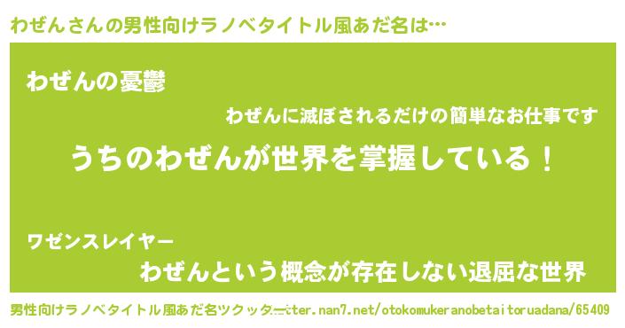 | 胡散臭い通販商品みたいなあだ名 | 『億万長者になれる水晶球…その名も「わぜん」』 |
