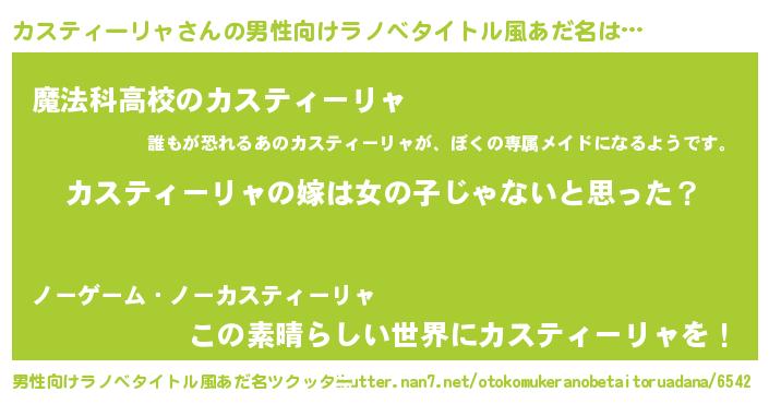 | 女子向けラノベタイトル風あだ名 | 『カスティーリャの卵を拾いまして』 |