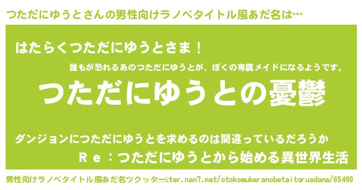 | 女子向けラノベタイトル風あだ名 | 『(仮)つただにゆうとのやんごとなき事情』 |