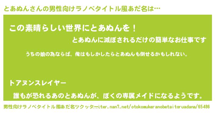 | 意味不明あだ名 | 『とあぬんフォーエバー』 |