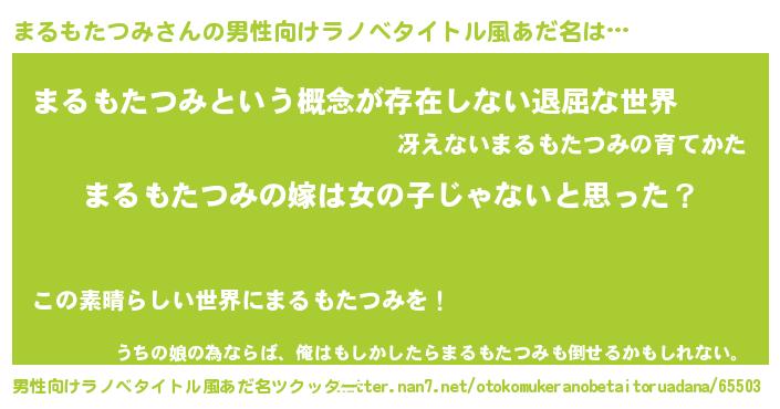 | 女子向けラノベタイトル風あだ名 | 『まるもたつみ様がみてる』 |