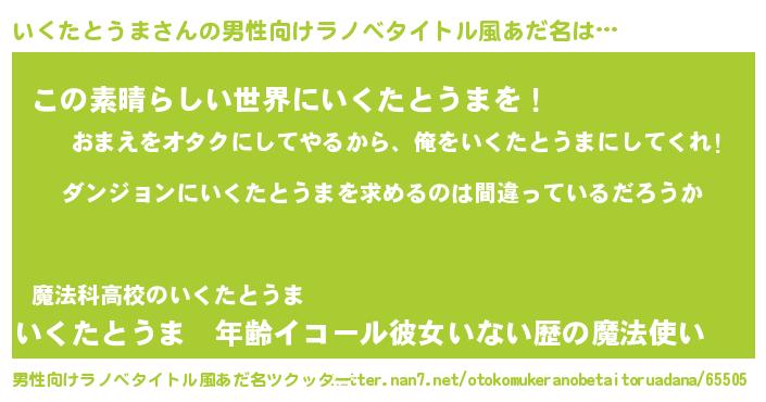 | 女子向けラノベタイトル風あだ名 | 『いくたとうまは平凡を望む』 |