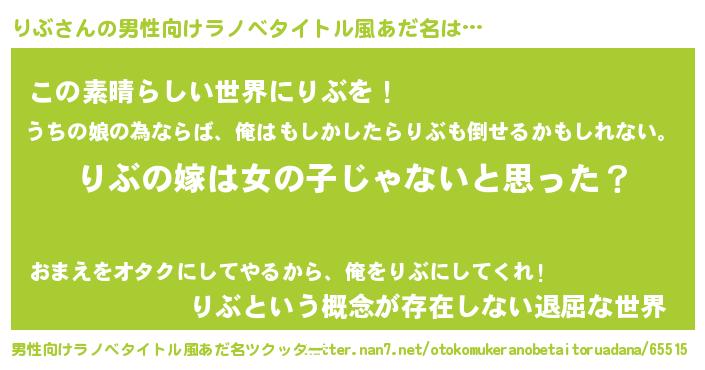 | 女子向けラノベタイトル風あだ名 | 『りぶ様がみてる』『りぶの契約王妃』 |