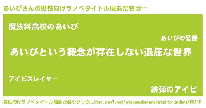あいびさんの男性向けラノベタイトル風あだ名をツクッター!