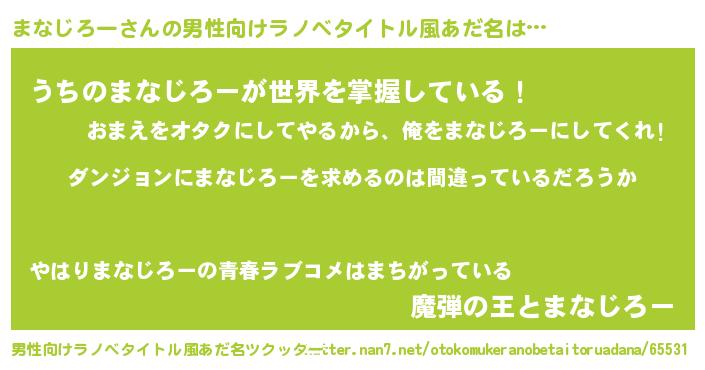 | 意味不明あだ名 | 『とにかく怪しいまなじろー』 |