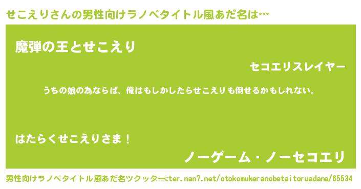 | 女子向けラノベタイトル風あだ名 | 『せこえり伯爵の花嫁』『せこえり恋絵巻』 |