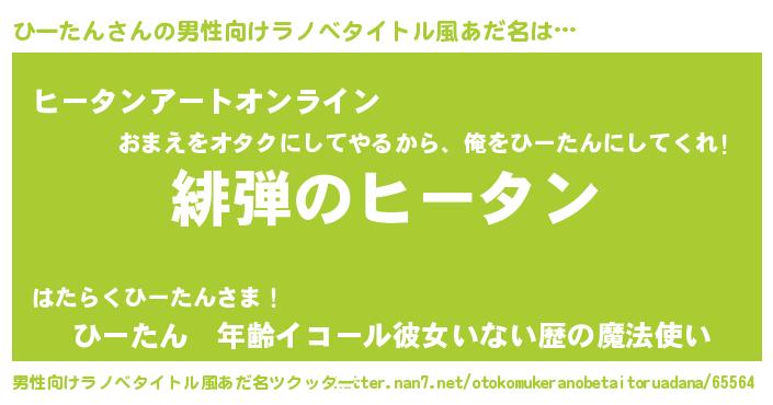 | 女子向けラノベタイトル風あだ名 | 『シンデレラひーたん家の靴箱館』 |