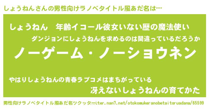 | 胡散臭い通販商品みたいなあだ名 | 『モンドセレクションを受賞した隕石のかけら…その名も「しょうねん」』 |