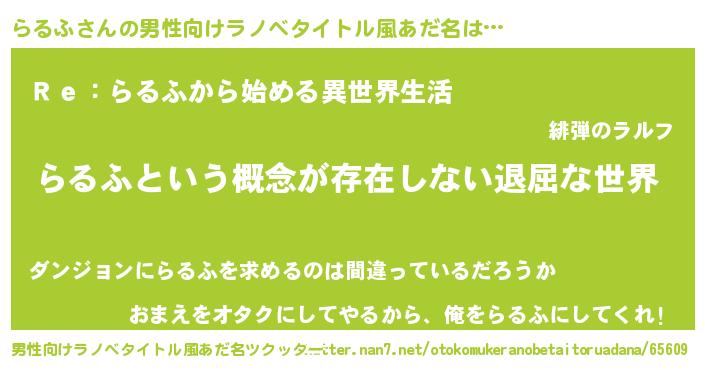 | 意味不明あだ名 | 『永久保存らるふ』『自称らるふ』 |