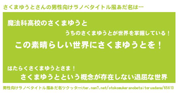 | 女子向けラノベタイトル風あだ名 | 『悪役さくまゆうとに転生したようですが、知った事ではありません』 |