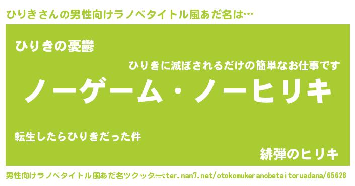 | 女子向けラノベタイトル風あだ名 | 『死神ひりきの再婚』 |