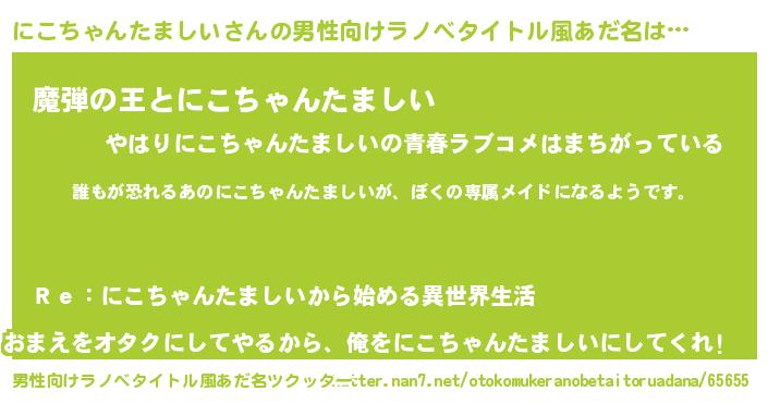 | 胡散臭い通販商品みたいなあだ名 | 『前代未聞の健康食品…その名も「にこちゃんたましい」』 |