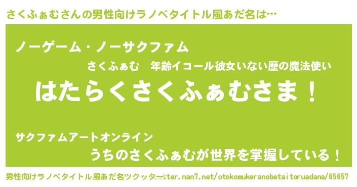 | ヒーロー風カッコイイあだ名 | 『正義の使者さくふぁむ』『炎刃騎士サク』 |