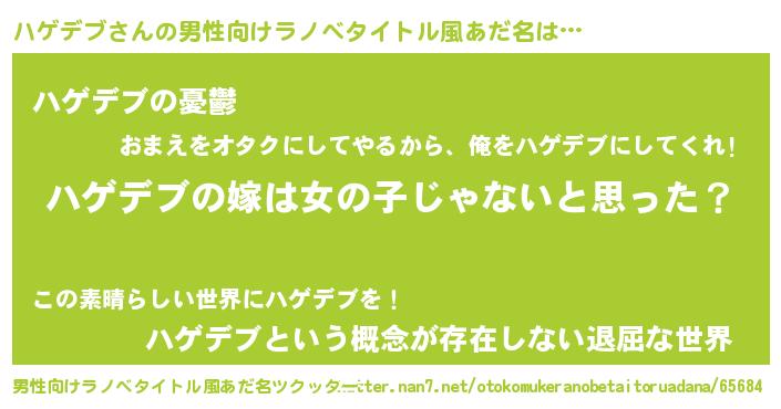 | 女子向けラノベタイトル風あだ名 | 『ハゲデブ様がみてる』 |