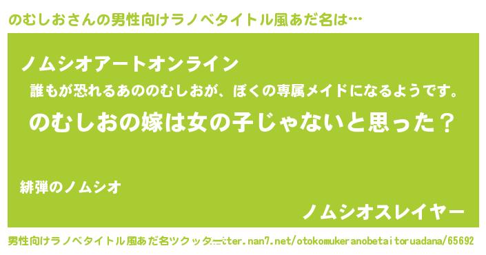| 女子向けラノベタイトル風あだ名 | 『のむしおの卵を拾いまして』 |