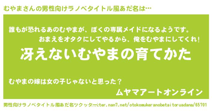 | 胡散臭い通販商品みたいなあだ名 | 『来世でも幸せになれる水素水…その名も「むやま」』 |