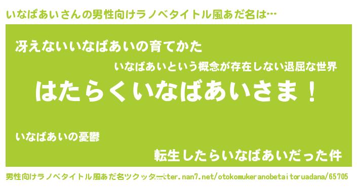 | 胡散臭い通販商品みたいなあだ名 | 『絶対に幸福をもたらす健康食品…その名も「いなばあい」』 |