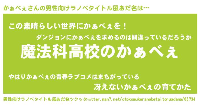 | 女子向けラノベタイトル風あだ名 | 『かぁべぇなんてお断りですっ。』 |
