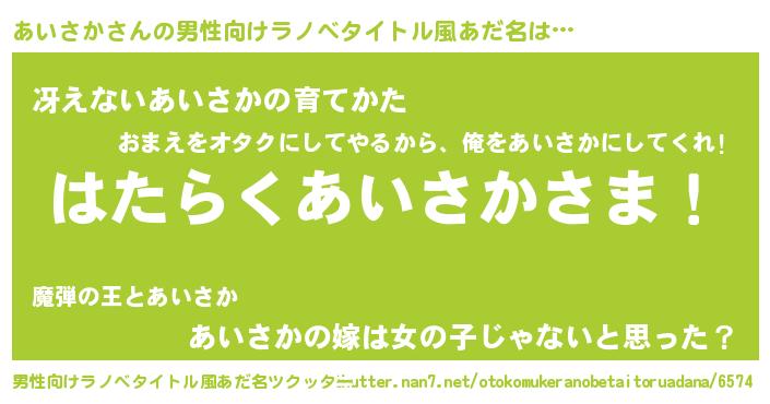 | 意味不明あだ名 | 『とにかく怪しいあいさか』 |