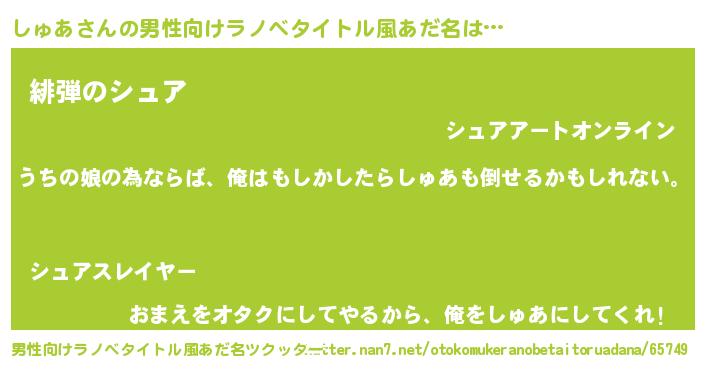 | 肩書あだ名 | 『しゅあ国家主席』『しゅあ艦長』 |