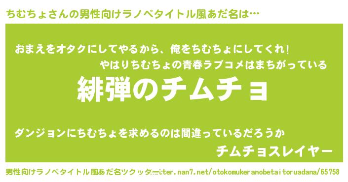 | ヒーロー風カッコイイあだ名 | 『友情の使者ちむちょ』『暗黒騎士チム』 |