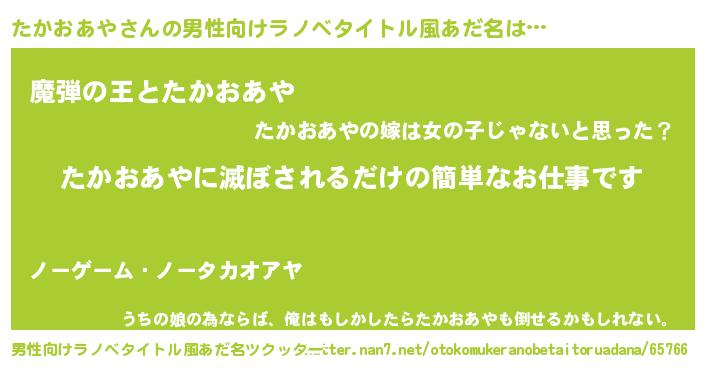 | 意味不明あだ名 | 『住所不定無職たかおあや(84歳)』 |