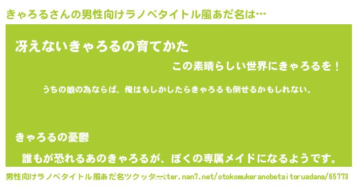 | 女子向けラノベタイトル風あだ名 | 『きゃろるの婚約者』 |