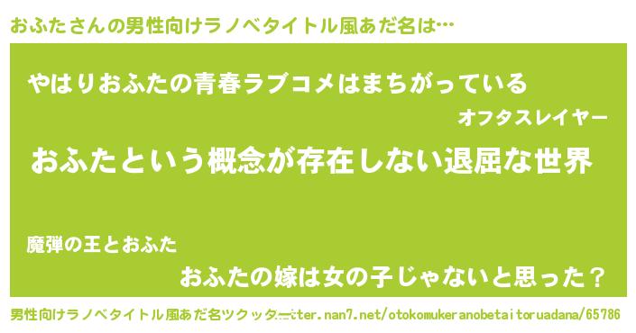 | 胡散臭い通販商品みたいなあだ名 | 『来世でも幸せになれる健康食品…その名も「おふた」』 |