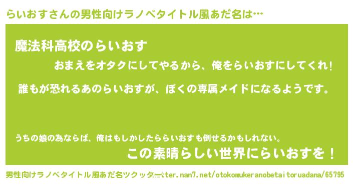 | 意味不明あだ名 | 『永久保存らいおす』『自称らいおす』 |