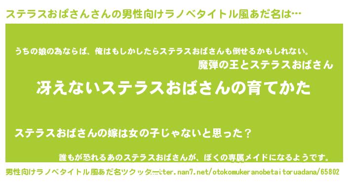 | 女子向けラノベタイトル風あだ名 | 『男装ステラスおばさんの憂鬱な任務』 |
