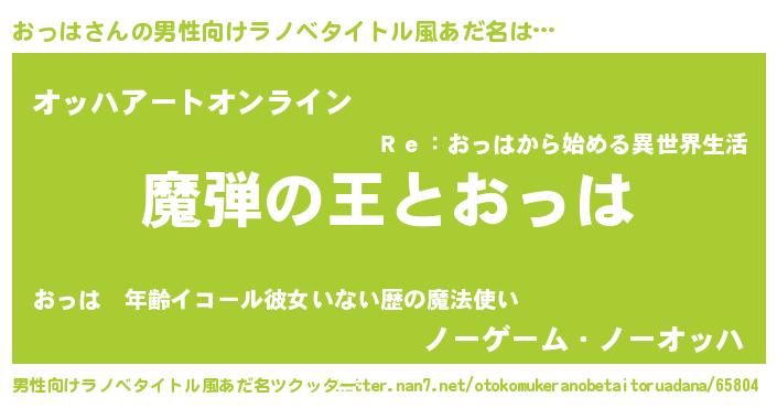 | 意味不明あだ名 | 『住所不定無職おっは(53歳)』『自称おっは』 |