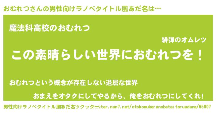 | 意味不明あだ名 | 『住所不定無職おむれつ(79歳)』 |