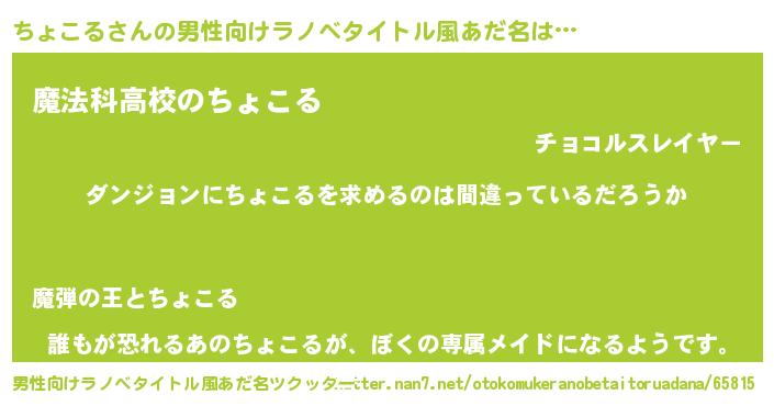 | 意味不明あだ名 | 『とにかく怪しいちょこる』 |