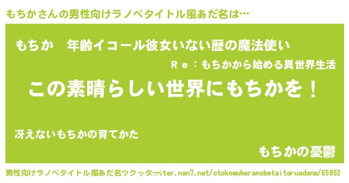 | 意味不明あだ名 | 『住所不定無職もちか(14歳)』『自称もちか』 |