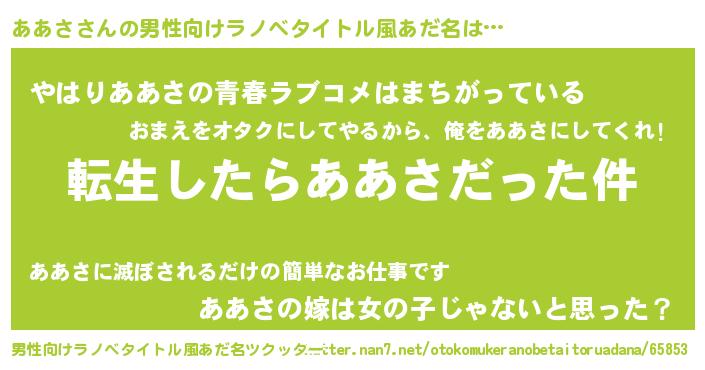 | ヒーロー風カッコイイあだ名 | 『ウルトラああさマン』『黄金騎士アア』 |