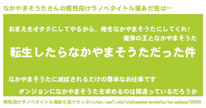 | 女子向けラノベタイトル風あだ名 | 『なかやまそうたの玉の輿計画!』 |