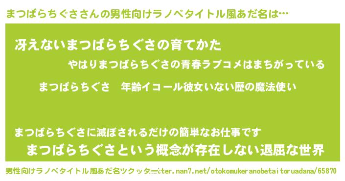 | 伝説のあだ名 | 『古文書に記された勇者まつばらちぐさ』 |