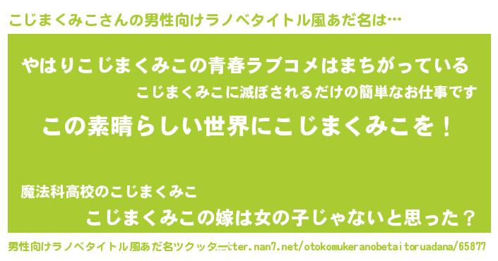 | 胡散臭い通販商品みたいなあだ名 | 『あなたにだけ特別に提供する100年もののヴィンテージワイン…その名も「こじまくみこ」』 |