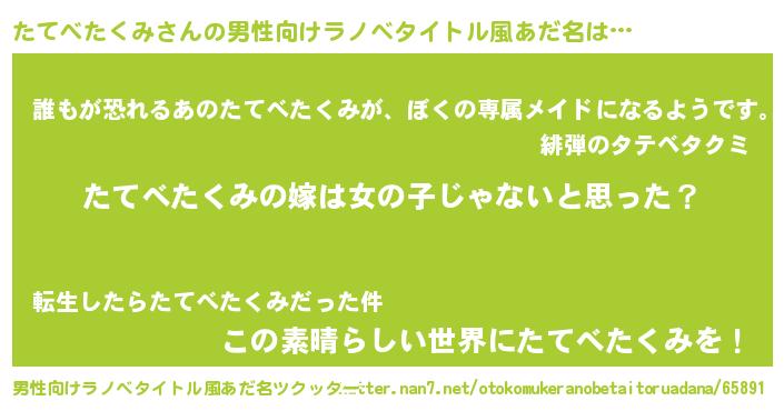 | 女子向けラノベタイトル風あだ名 | 『たてべたくみ様がみてる』 |